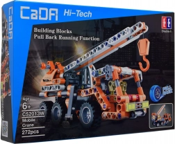 Set iz serije Hi‑Tech je namenjen vsem, ki imajo radi izzive in natančne modele. Mobilni žerjav v oranžni barvi je zasnovan z poudarkom na detajlih, ponuja premične dele in se zahvaljujoč pull‑back pogonu po navitju in spustu zapelje več kot 8 metrov. Jasna, korak‑za‑korakom navodila bodo ob nadzoru odrasle osebe osvojili tudi mlajši graditelji.