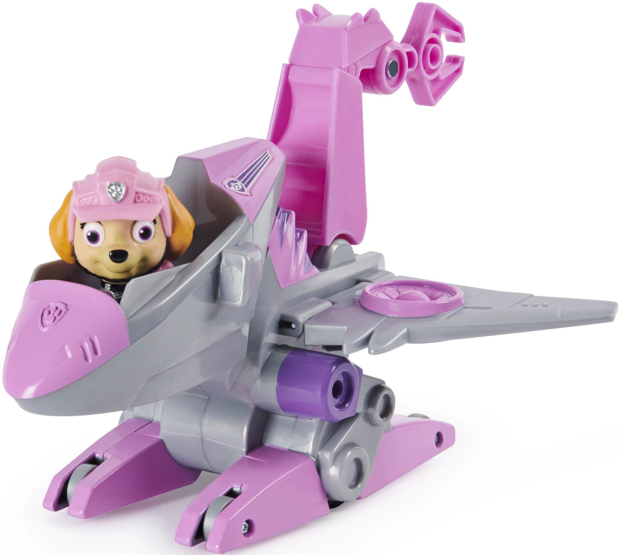 Figurica Skye je podrobno izdelana, nosi rožnato kapo in jetpack, ima premične elemente za enostavno poziranje in igro. Vozilo je prilagojeno figurici, zato lahko otroci takoj odrinejo na dino reševalne misije.
