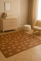 Nežno rjava s kremnimi loki deluje elegantno v otroški sobi in dnevnem prostoru ter hkrati ne odvrača otrokove pozornosti.