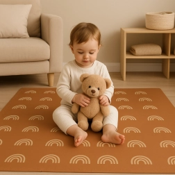 Ustvarite otrokom prijeten in varen kotiček za igro, plazenje in prve korake. Podloga iz prožne EVA pene je higienska, enostavna za čiščenje (zadostuje obris z vlažno krpo) in zaradi debeline 1 cm odlično izolira od hladnih tal. Diskretna rjava izvedba s kremnimi loki se poda v vsak interier.
