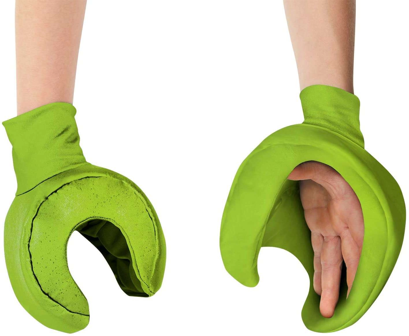 V paketu so tunika, črne hlače, maska in zelene rokavice – vse pripravljeno za pust, Noč čarovnic in igre doma.