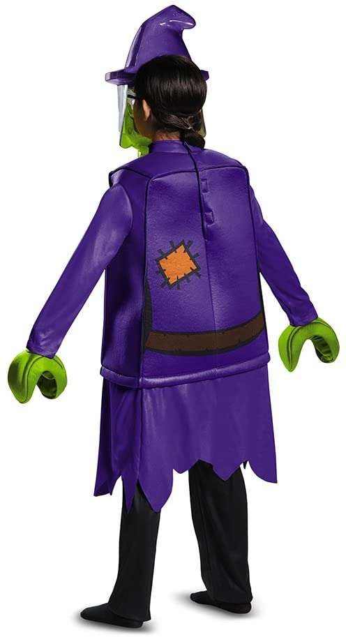 Spremenite male čarovnice v blokovnega junaka s tem izvirnim kostumom v slogu LEGO. Komplet vsebuje vijolično tuniko, masko z glavo čarovnice z vijoličnim klobukom, zelene krempljaste rokavice in črne hlače. Maska ima mrežico na predelu oči za dober pregled, elastični trak za zanesljivo prileganje in mehko podlogo za udobje. Idealno za pust, Noč čarovnic in vsakodnevne kostumske igre.