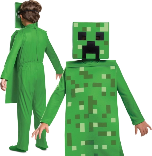 Uradno licenciran otroški kostum Creeper iz igre Minecraft za dečke, stare 7–8 let, in višine 127–136 cm. V kompletu sta udoben pajac in maska. Idealno za pust, šolske prireditve in igro doma. Lahek 100% poliester zagotavlja enostavno oblačenje in ure zabave.