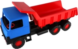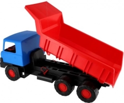 Robusten plastični tovornjak z modro kabino in rdečo nagibno kesono bo razveselil male graditelje doma in na peskovniku. Zaradi dolžine 75 cm, vzdržljivih koles in funkcionalnega nagibanja zlahka prevaža pesek, kamenčke in igrače. Lahka in varna zasnova podpira kreativno igro na prostem.