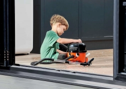 Zahvaljujoč odpirajočemu se pokrovu in odstranljivemu zbiralniku se zlahka čisti, medtem ko nosilci na zadnji strani poskrbijo, da dodatki ostanejo lepo skupaj. Tiho delovanje je prijazno do otroškega sluha, priročen ročaj pa olajša prenašanje iz sobe v sobo.
