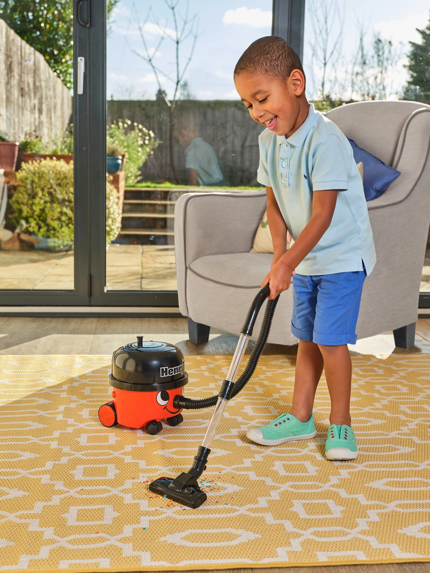 Priljubljeni HENRY v otroški izvedbi spremeni pospravljanje v zabavo. Realistična zasnova z nasmejanim obrazom, štirimi kolesi in prozorno cevjo navduši male pomočnike. Sesalnik dejansko posesa drobne in lahke delce (npr. konfete ali polistirenske kroglice) in hkrati ostaja nežen in varen že od 3. leta.