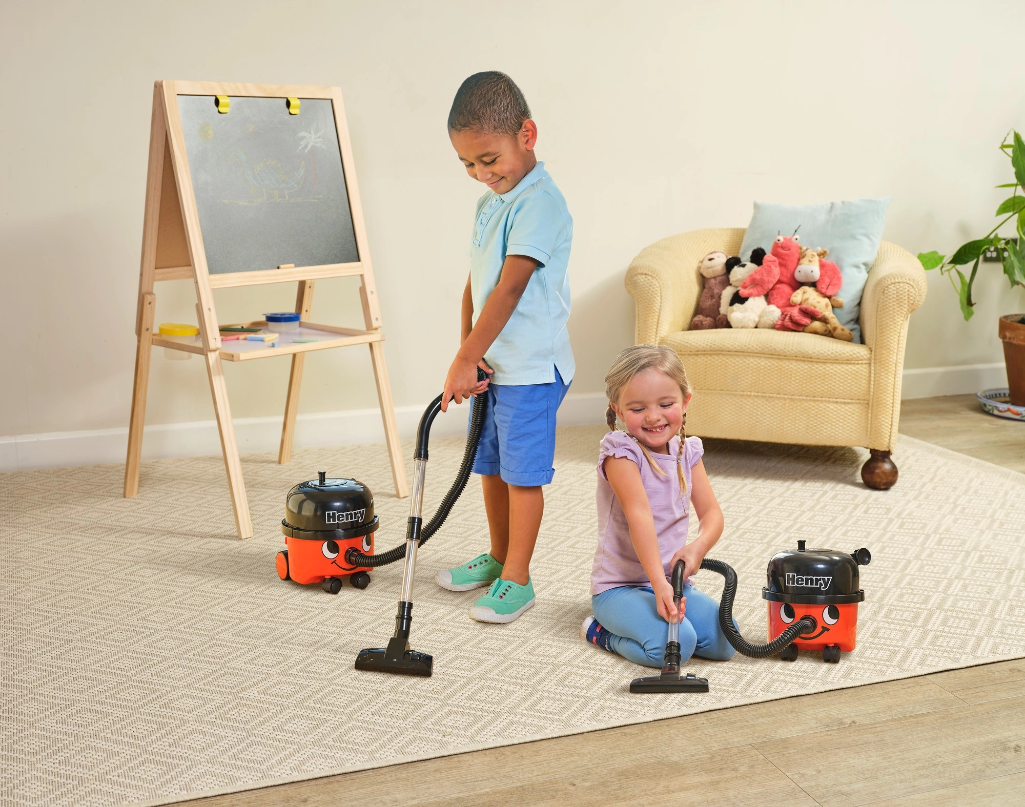 Zabaven otroški sesalnik HENRY znamke Casdon prinaša realistično igro čiščenja z varno funkcijo sesanja, prozorno cevjo in shrambnim prostorom za dodatke. Zaradi tihega delovanja, vrtljivih koles in lahke zasnove z ročajem spodbuja samostojnost otrok in razvija njihovo motoriko.