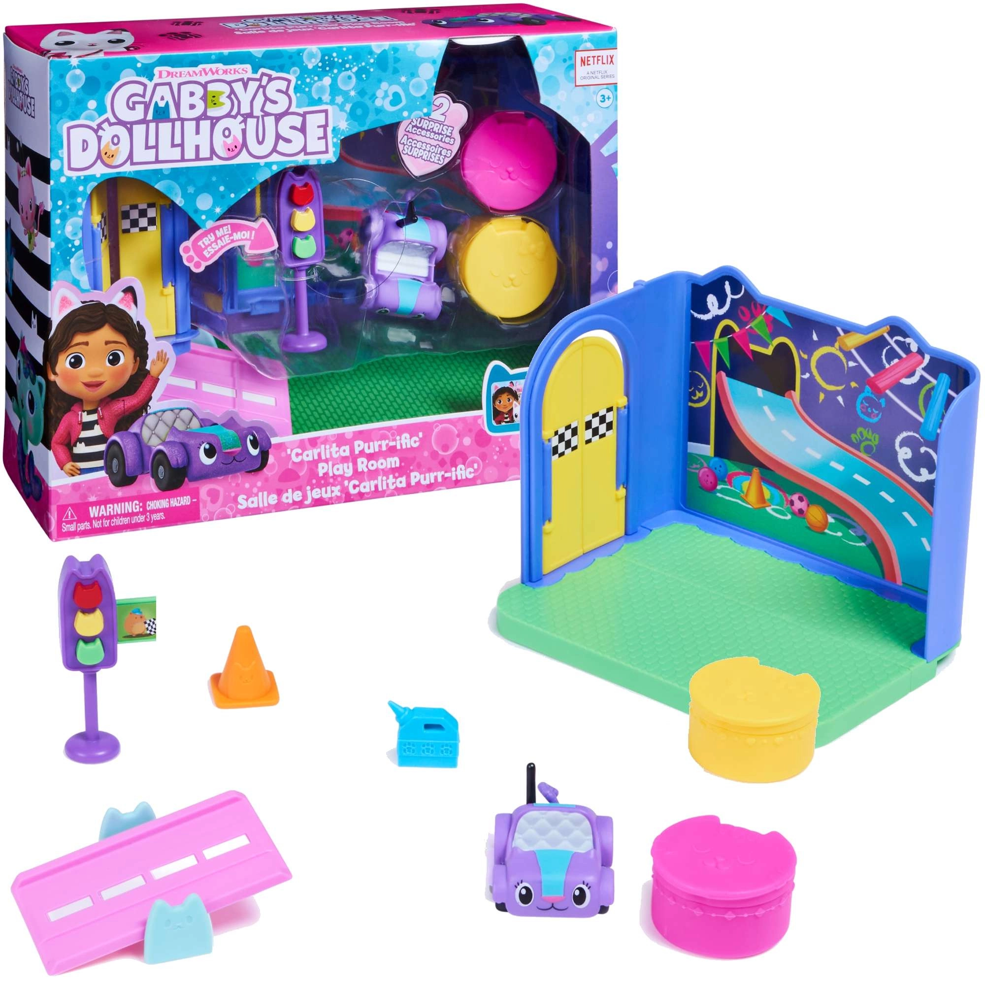 GABBY’S DOLLHOUSE – Kocifurova soba z avtomobilčkom in dodatki