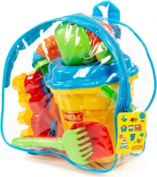 Praktičen komplet za pesek v prozornem nahrbtniku bo razveselil vsakega malega graditelja. Vsebuje vedro, 4 modelčke živalic, 3 modelčke za potičke, lopatko, grabljice in zalivalko – vse pripravljeno za zabavo na igrišču ali na plaži.