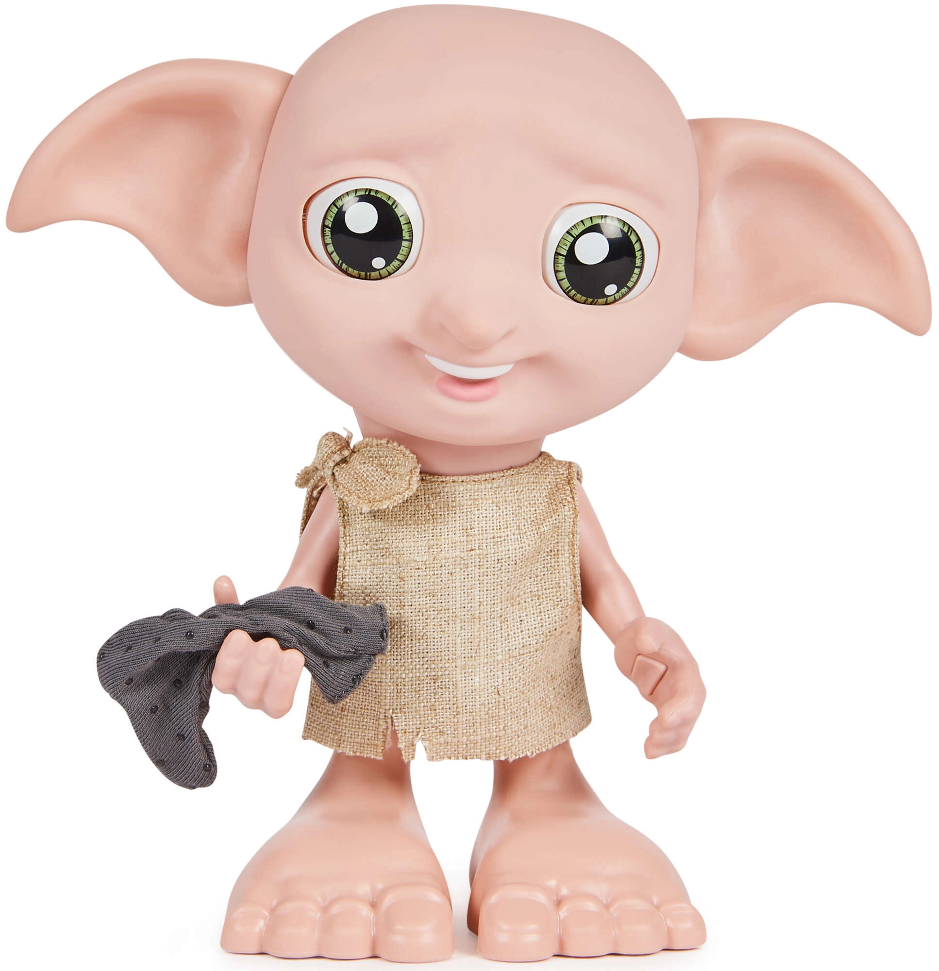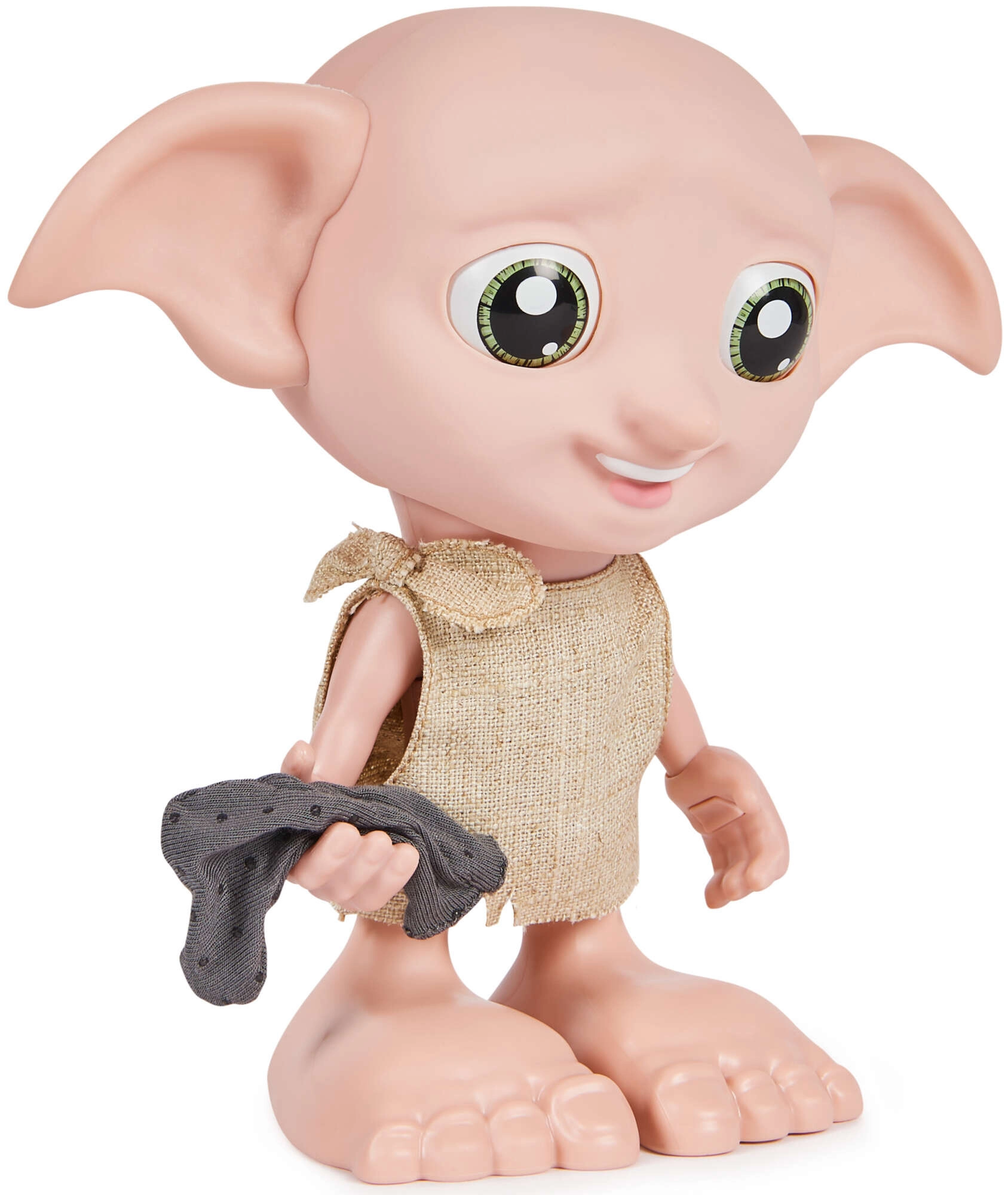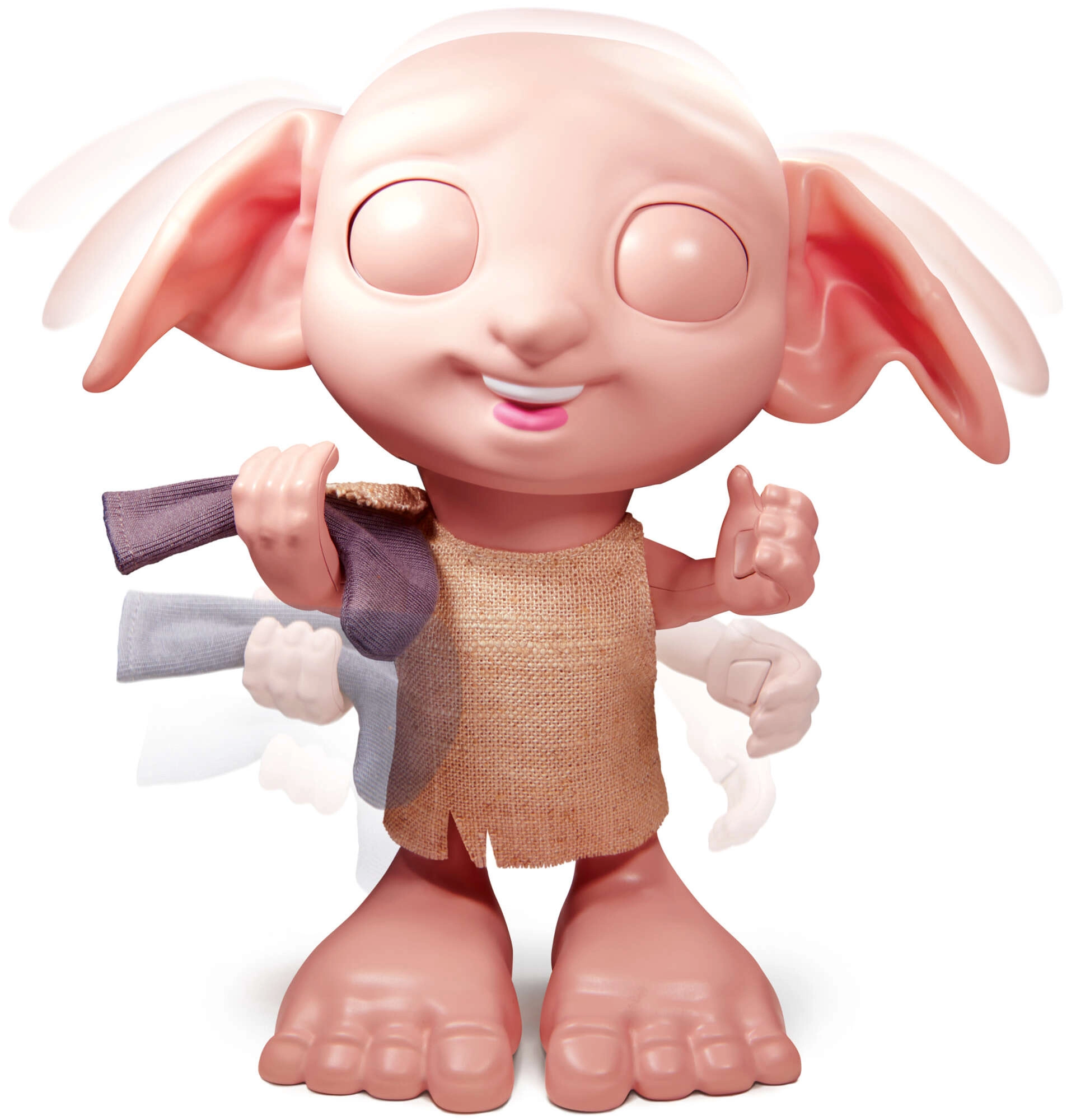 Interaktivna figurica DOBBY zvesto ujame filmski lik – velike zelene oči, izrazita ušesa in preprosta tekstilna tunika. Zahvaljujoč artikuliranim okončinam in obrazu jo zlahka nastavite v različne poze za igro ali razstavo. Z enim pritiskom gumba na levi roki zaženete 35 fraz in melodij iz čarobnega sveta.