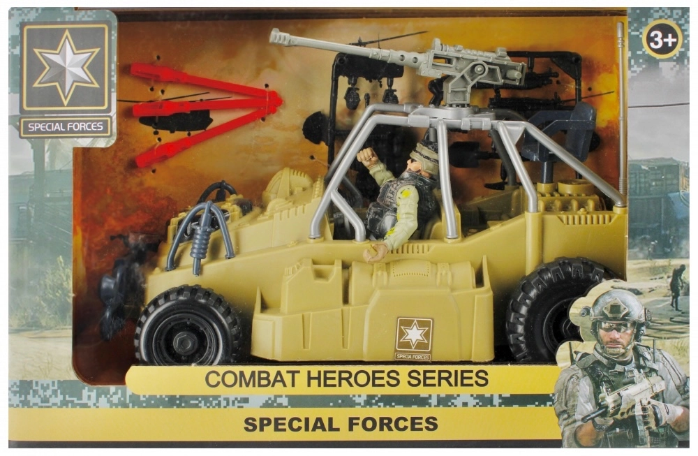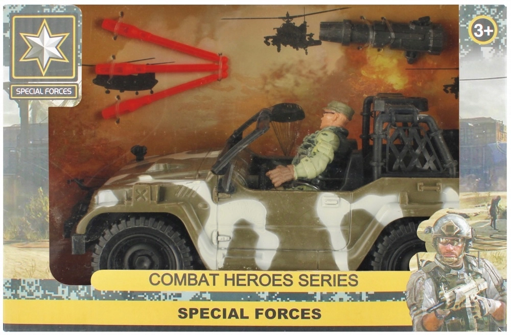 V kompletu so orožje in dodatki, ki jih je mogoče pritrditi na vozilo, da lahko otroci ustvarjajo lastne zgodbe specialnih operacij.