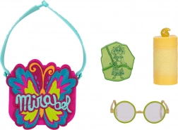 Del kompleta je tablica z Brunovo vizijo, sestavljena iz več kosov kot puzzle, ki jo je mogoče sestaviti in razkriti Mirabel. Zelena okrogla očala brez dioptrije posnemajo tista iz filma, medtem ko je rožnata torbica s turkiznim trakom in imenom Mirabel idealna za malenkosti. Rumena sveča z ornamenti ob pritisku na gumb nežno zasveti in igri doda magično vzdušje.