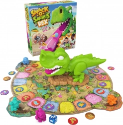 Pomagajte lačnim jamskim ljudem zbirati okusne prigrizke in se izogniti nagajivemu jeziku dinozavra v igri SNACK‑O‑SAURUS REX znamke Spin Master. Preprosta pravila, hitro in dinamično igranje, zabava za otroke od 5 let naprej in vso družino. Cilj je zbrati dva para prigrizkov, a pozor – dinozaver vas lahko pošlje nazaj ali vam plen pobere!
