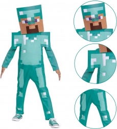 Ta licencirani kostum iz priljubljene igre Minecraft prinaša avtentičen turkizen diamantni oklep z značilnim pikseliranim potiskom. Lahek in prijeten material zagotavlja udobje pri celodnevnem nošenju ter lahkotno gibanje pri igri in plesu.