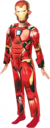 Ta uradno licenciran kostum, navdihnjen po svetu MARVEL, bo razveselil vse ljubitelje superjunakov. Enodelna obleka v rdeče‑zlatih barvah z realističnim potiskom panelov oklepa in izrazitim ark reaktorjem na prsih poskrbi za avtentičen videz.