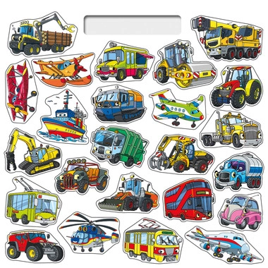 Odkrijte svet avtomobilov, vlakov, ladij in drugih prevoznih sredstev s pobarvanko, ki otroke navdihuje k ustvarjanju in igri. Z nalepkami lahko najprej oblikujejo prizore, nato pa jih pobarvajo po lastni domišljiji. Idealna dejavnost za doma in na poti.