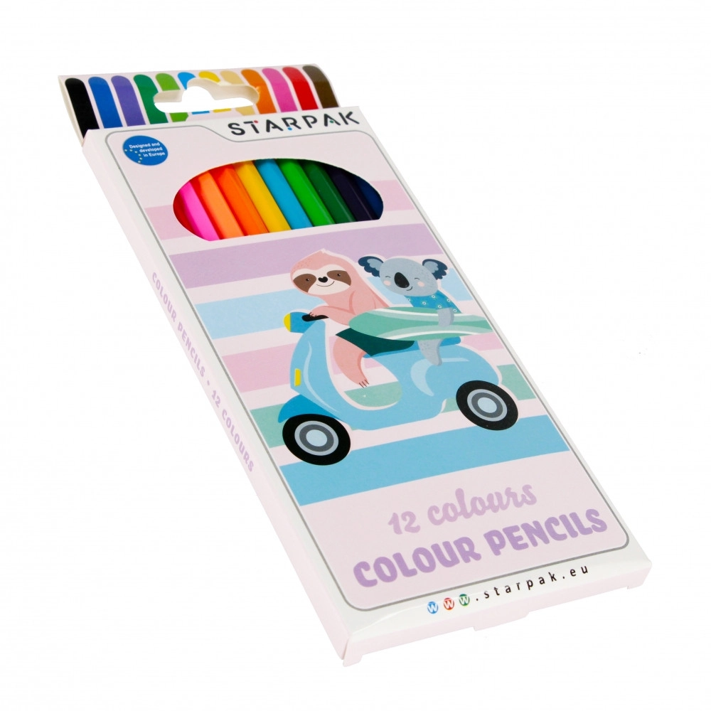 Vesel set barvic z motivom lenivca bo razveselil male in velike ustvarjalce. Vsebuje 12 izrazitih barv, udobno dolgih 18 cm za lahkotno držanje in je primeren za otroke od 3 let. Odličen za šolo, vrtec in ustvarjanje doma.