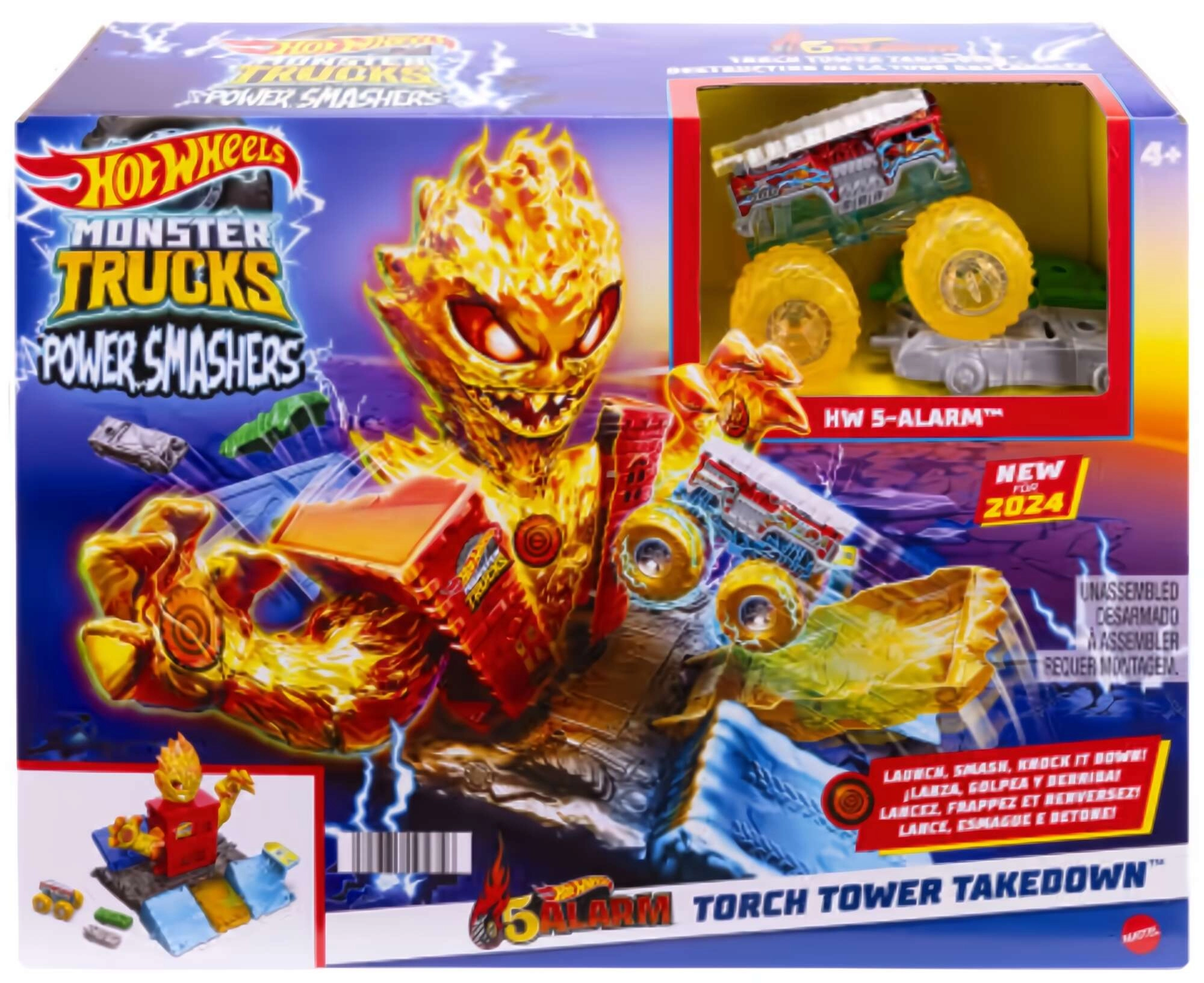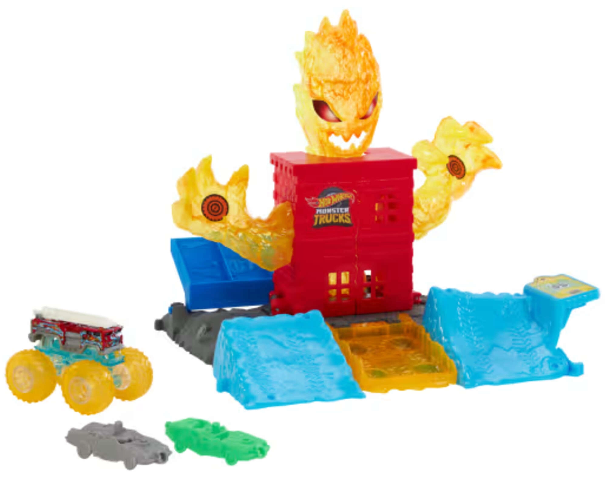 Vstopite v svet akcije z igralnim setom HOT WHEELS Monster Trucks Arena Smashers – Ognjeni stolp. Otroci izstrelijo monster truck, zadenejo ognjeni stolp in sprožijo eksplozivne učinke, padanje delov in vrhunske kaskaderske trike. Priložen je monster truck v merilu 1:64 in 2 zdrobljiva avtomobilčka za še več zabave. Trpežna zasnova, enostavno upravljanje ter možnost povezovanja z drugimi seti iz serije Arena Smashers.