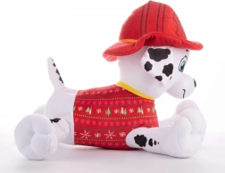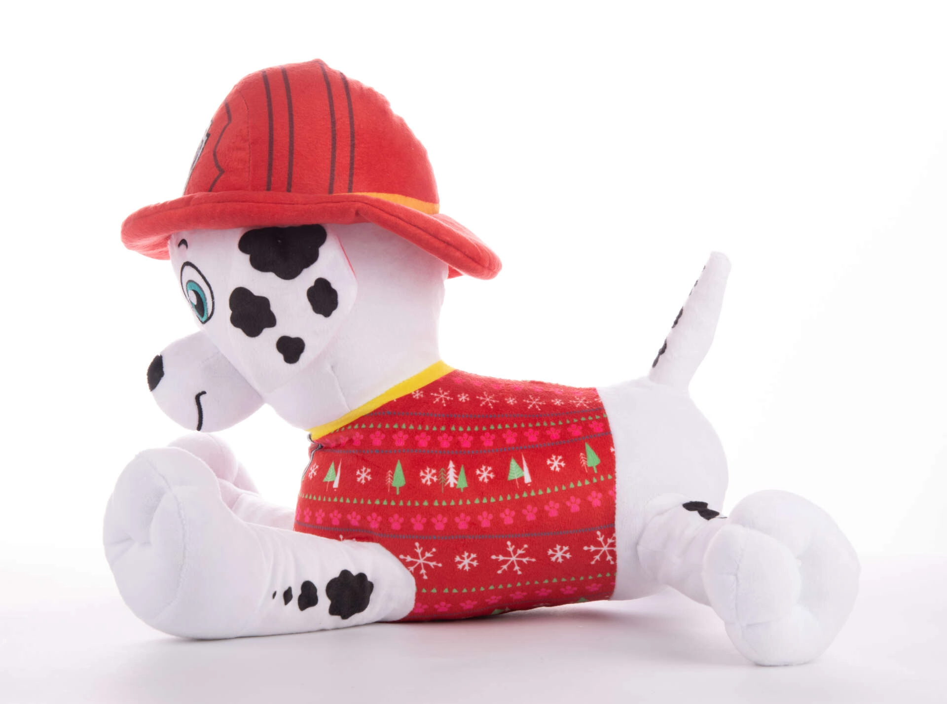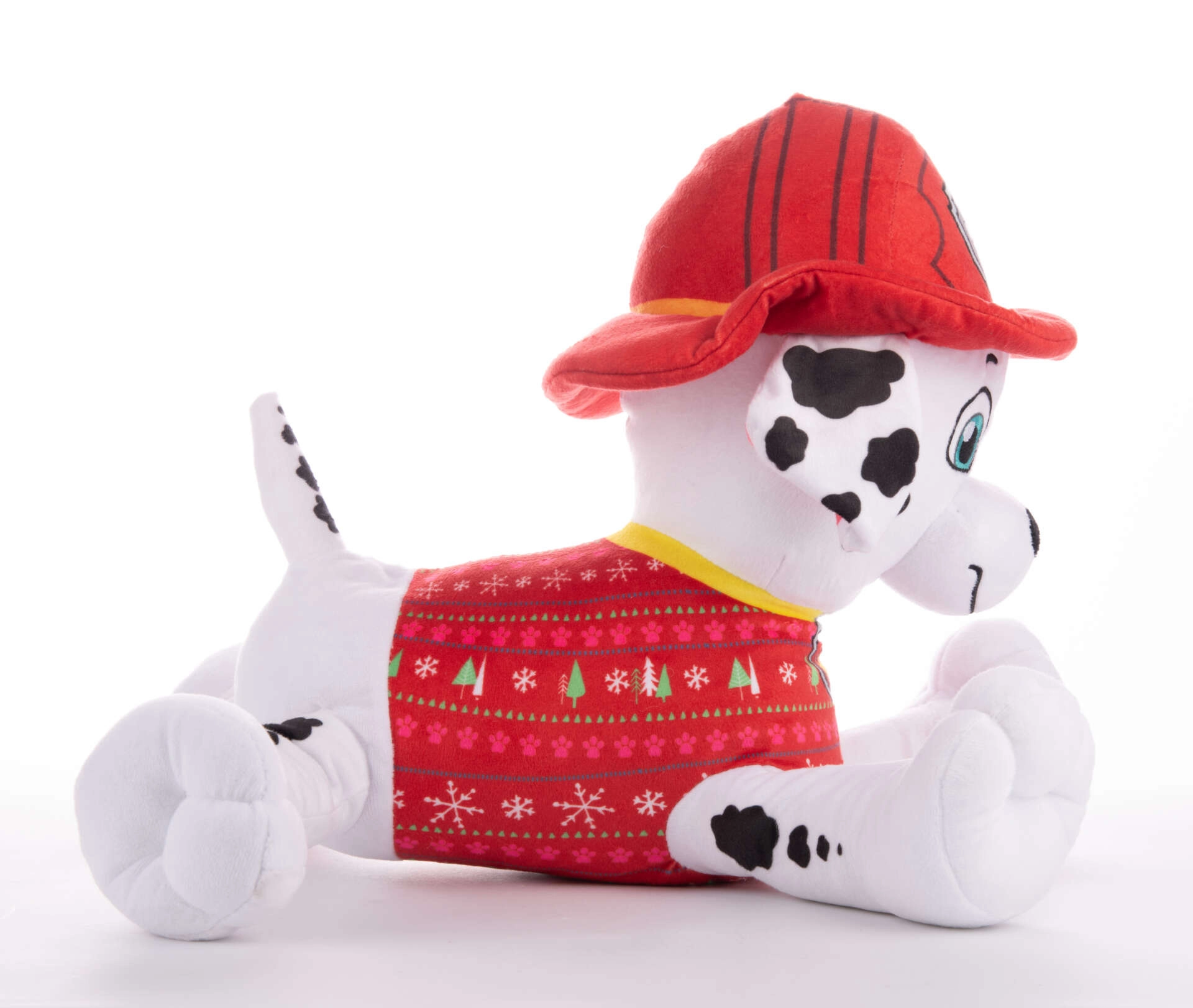 Dizajn dopolnjuje praznični rdeč pulover z zimskimi motivi in značko, ki poudarja Marshallovo junaško vlogo. Pliš je izdelan iz nežnega materiala, prijetnega na dotik, in zaradi velikih tačk stabilno leži.