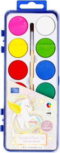 Odkrijte čar risanja z vodenimi barvami s motivom samoroga. Komplet ponuja 12 živahnih odtenkov, ki se zlahka mešajo in nanašajo, dopolnjuje pa ga čopič, zato lahko začnete ustvarjati takoj po odprtju. Lahek in tanek format je primeren za nahrbtnik in potovanja.