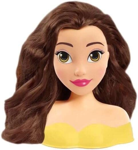 Ta stilizacijska glava zvesto prikazuje priljubljeno junakinjo Belle iz pravljice Lepotica in zver. Dolgi rjavi lasje so prožni in enostavni za urejanje, zato lahko otroci vadijo različne pričeske – od gladkih čopov do romantičnih kit. Igra razvija kreativnost, fino motoriko in občutek za estetiko.