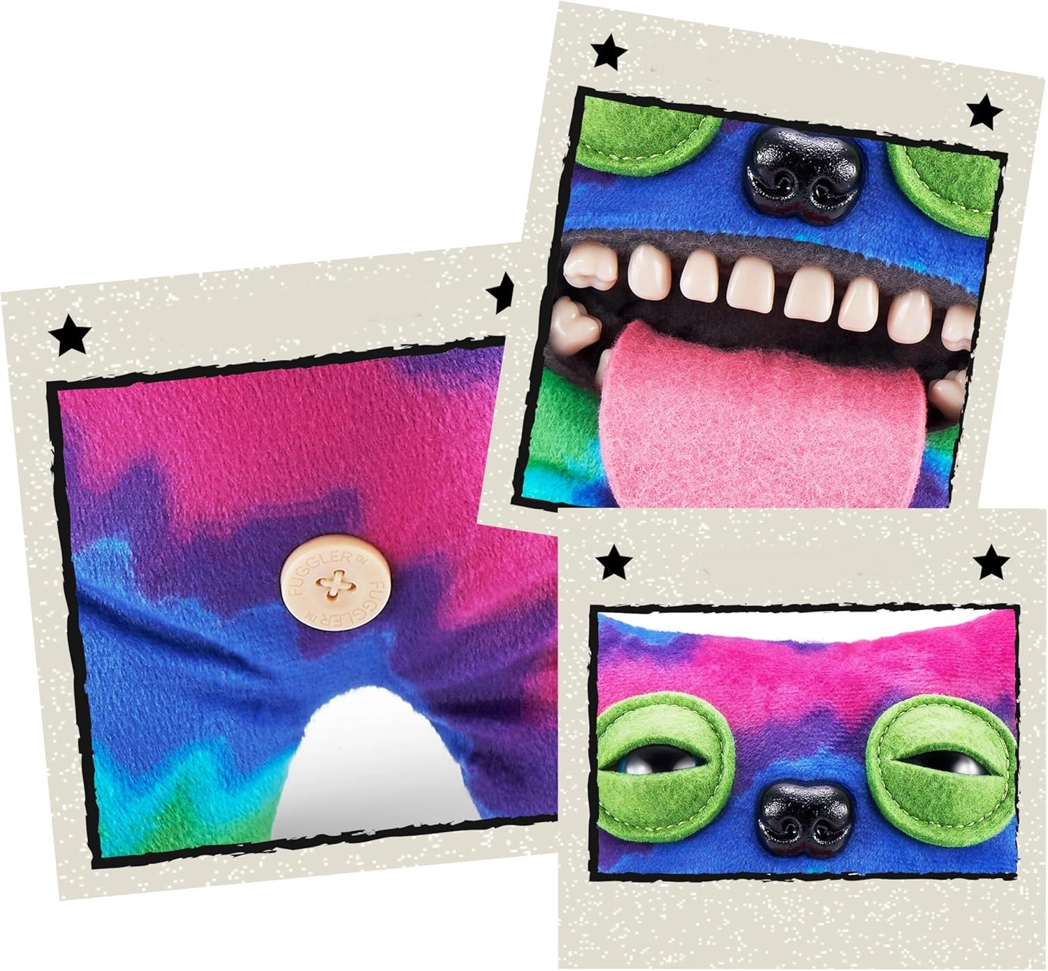 Odkrijte resnično odbitega pliškota iz serije FUGGLER znamke Spin Master – pisani »Sir Belch«, znan kot Gospod Šaljivec. Ta prisrčno čudaški ljubljenček ima izbuljene oči, razkazane zobe in iztegnjen jezik, kar ga dela izvirno darilo in zbirateljski kos za otroke in odrasle. Mehko telo s tie-dye vzorcem vabi k stiskanju, igri in razstavitvi na polici.