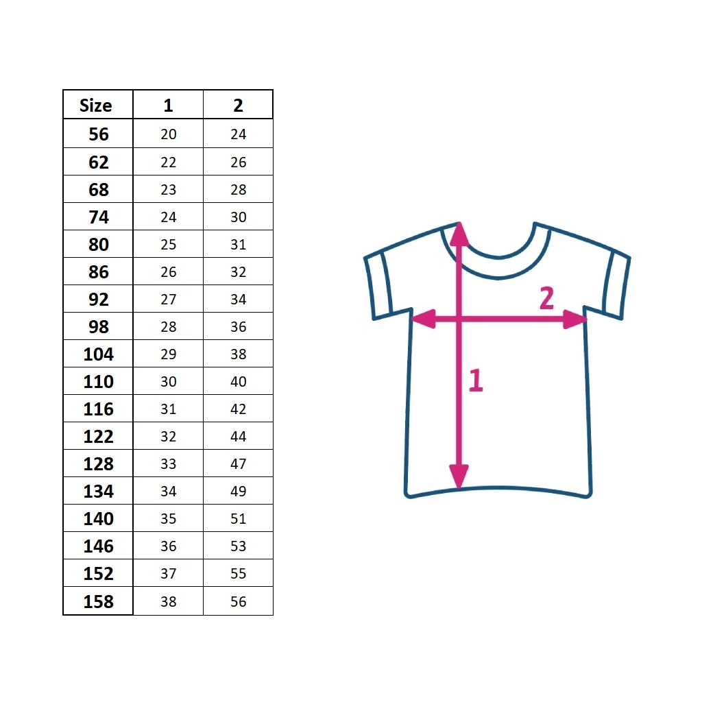 Priporočamo, da se ravnate po tabeli velikosti (glejte zadnjo fotografijo) za izbor prave velikosti. Majica v velikosti približno 140 je primerna za otroke, stare 9–10 let.