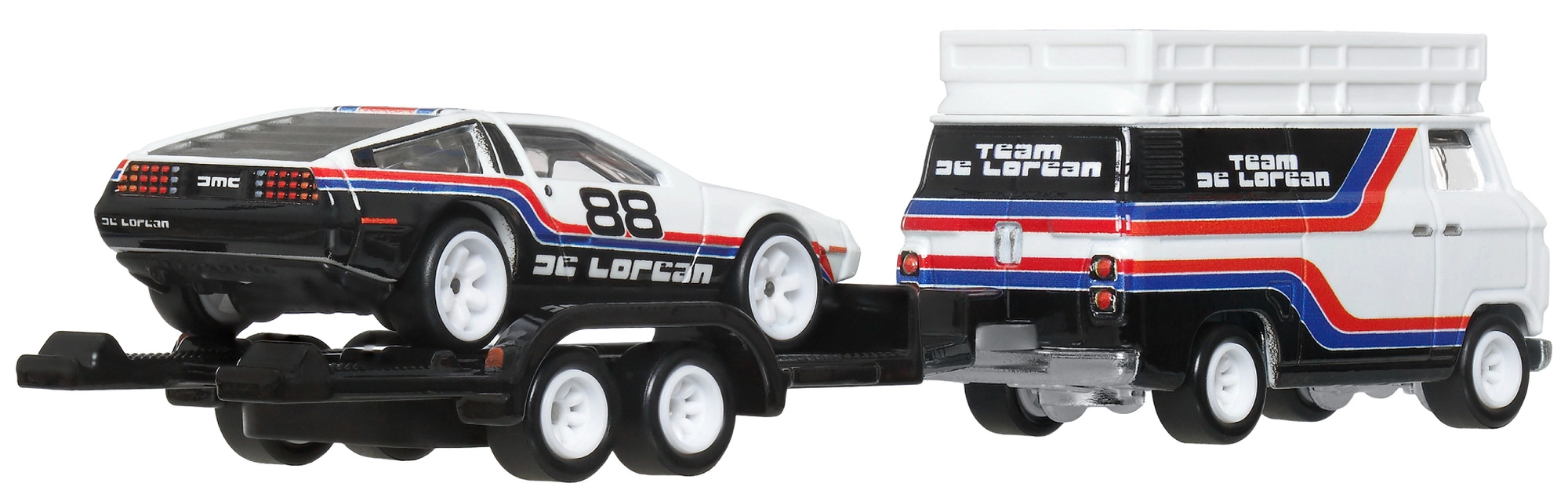 Ekskluzivni komplet iz serije Hot Wheels Premium Team Transport prinaša ikonični DMC DeLorean #78 na prikolici za stilskim rally haulerjem. Zahvaljujoč konstrukciji Metal/Metal, realističnim pnevmatikam Real Riders in podrobnim potiskom Team DeLorean je to popolna izbira za zbiratelje in otroke od 3 let dalje.