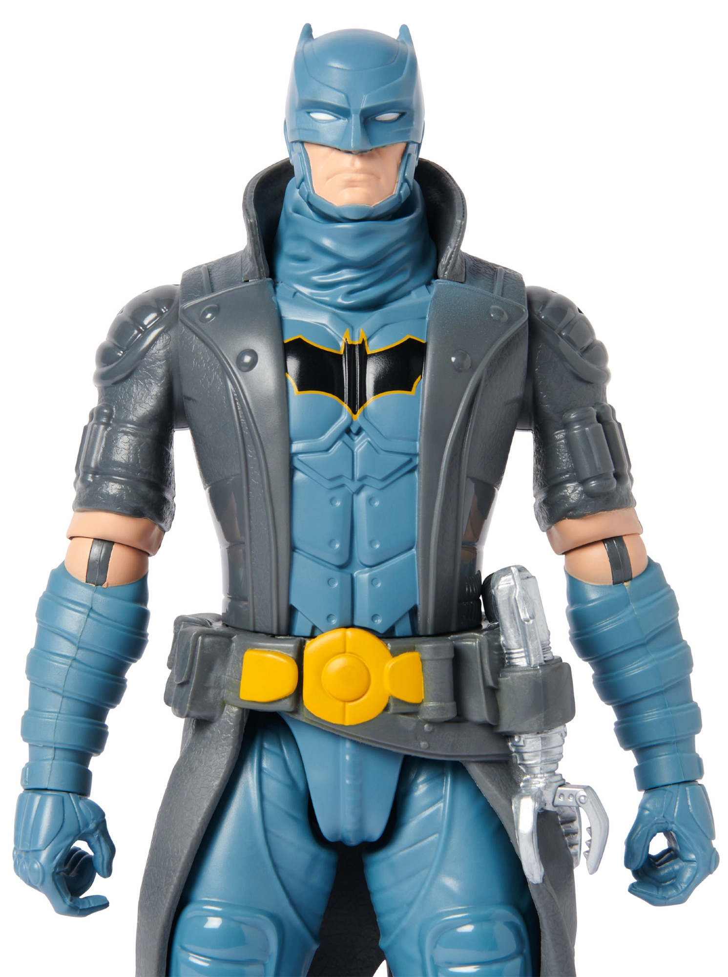 Podroben oklep, plašč in ikonični netopirjev znak prinašajo zvest videz priljubljenega junaka iz DC COMICS.