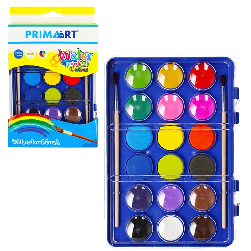 12 akvarelnih barv, 2 čopiča
