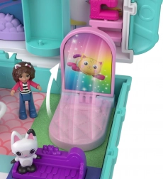 Kompaktni mačji domek Polly Pocket prinaša otrokom bogat svet domišljije v majhnem, prenosnem etuiju. Po odprtju se razkrije večnadstropna notranjost s tematskimi sobicami, bleščečo kupolo in premičnimi elementi, ki spodbujajo zgodbe, navdihnjene z GABBY’S DOLLHOUSE.