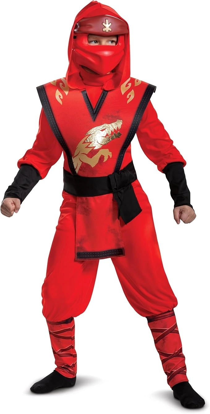 Spremenite svojega malega oboževalca LEGO v legendarnega rdečega ninjo Kaia. Ta uradno licenciran otroški kostum ponuja celotno pokritost, udoben kroj in ikonične podrobnosti iz NINJAGO. V kompletu sta kostum in maska – idealno za pust, noč čarovnic in igre doma.