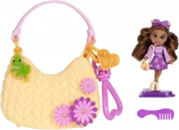 Stilska mini punčka iz serije Disney ILY 4Ever Tote Teenies, navdihnjena z RAPUNZEL, prinaša veliko zabave v kompaktni embalaži. Ima dolge rjave lase, vijoličen outfit s sončnim motivom, rumene čeveljčke in zlato mini torbico. Priložena je tudi večja rožnata torbica za prenašanje, glavnik, očala in stojalo za razstavljanje. Idealno za male Disney oboževalce in ljubitelje zbirateljskih mini punčk.