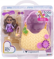 Odkrijte čar mini sveta s punčko, navdihnjeno z RAPUNZEL iz priljubljene serije Disney ILY 4Ever Tote Teenies. Ta prikupna punčka izstopa z vijoličnim oblačilom s soncem, dolgimi lasmi in zlato mini torbico, ki jo bodo otroci vzljubili. Praktična rožnata torbica z motivom Rapunzel shrani punčko in dodatke, zato jo lahko vzamete s seboj kamor koli.