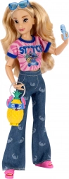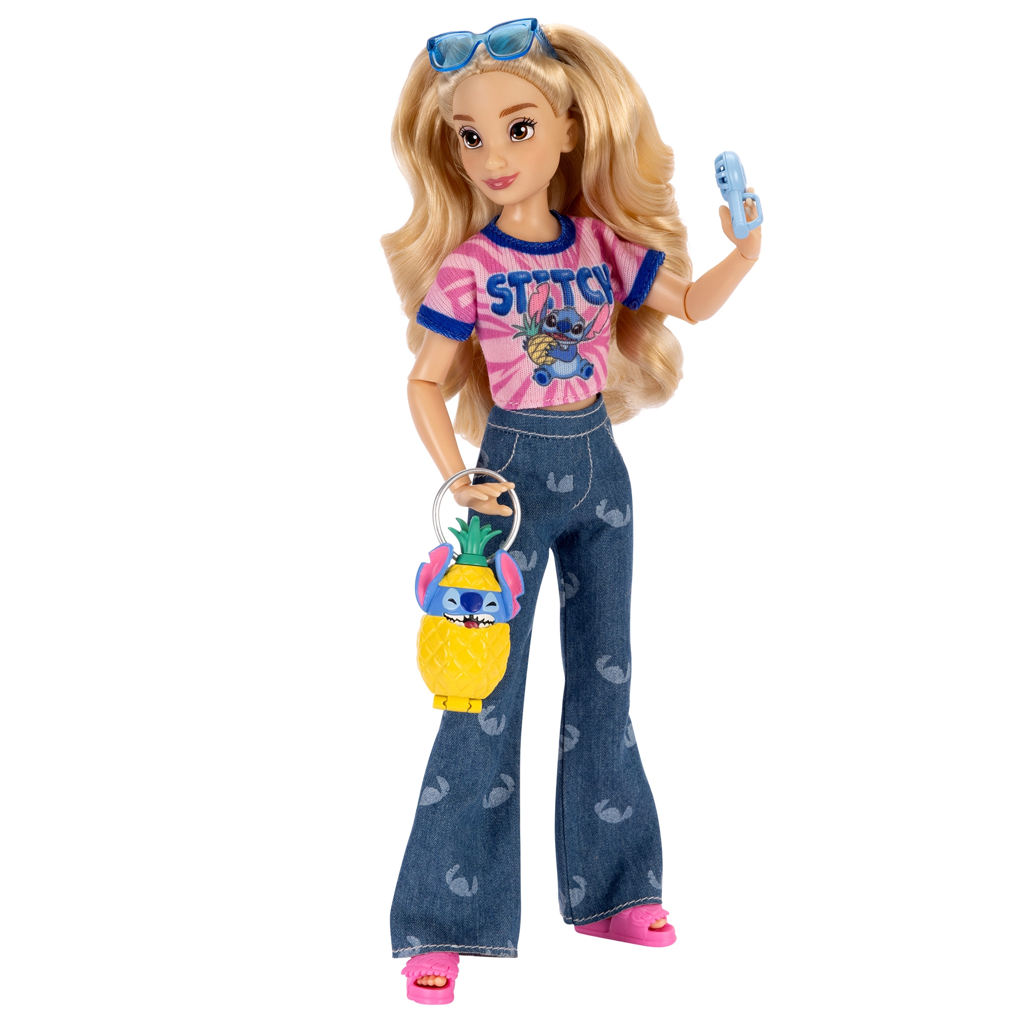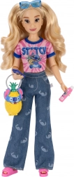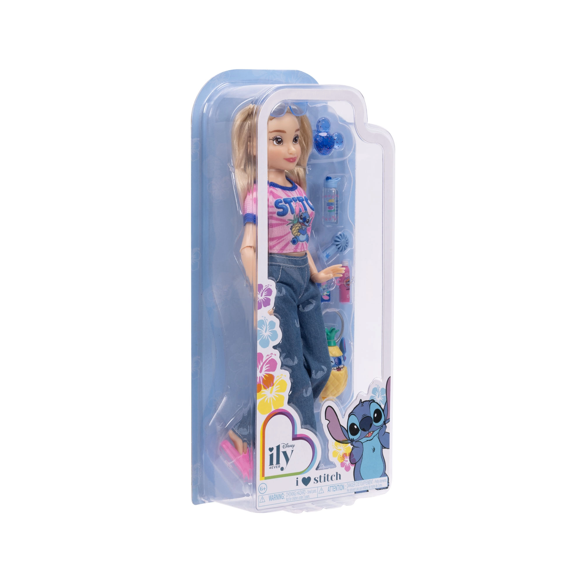 Odkrijte modno punčko Disney ILY 4Ever, navdihnjeno z priljubljenim junakom STITCH. Punčka z dolgimi blond lasmi nosi rožnato majico z motivom STITCH, modre kavbojke s potiskom in rožnate sandale. Zglobna konstrukcija z 13 točkami artikulacije omogoča realistično poziranje in spodbuja razvoj otroške domišljije.