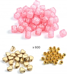 Elegantna ustvarjalna set s črkovnimi perlicami za izdelavo osebnih zapestnic in ogrlic. Otroci preprosto sestavijo imena ali sporočila in ustvarijo izviren nakit v zlati različici. Odlična izbira za fino motoriko, ustvarjalnost in kot darilo za male ustvarjalce.