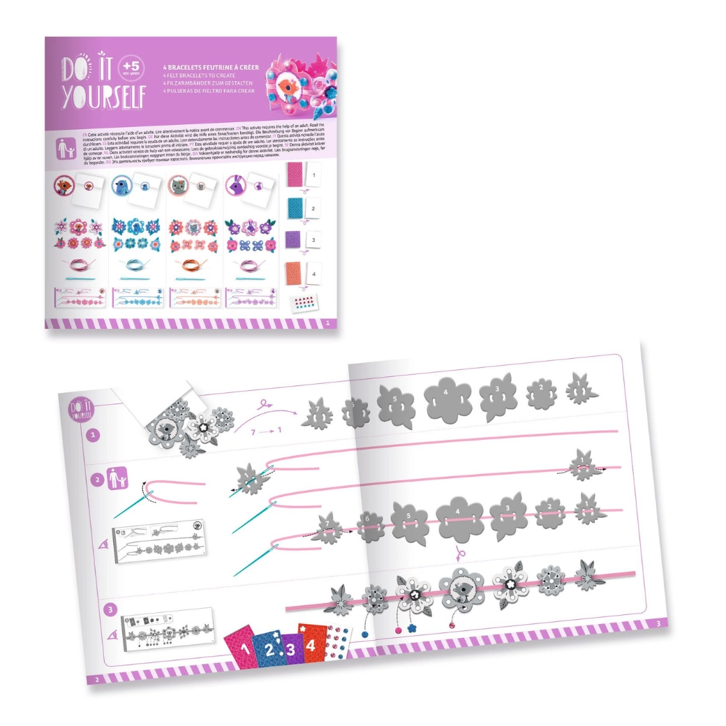 Komplet vsebuje rože, listke in prikupne motive iz žametno mehkega filca v živih barvah. Elemente lahko plastite in kombinirate za edinstven videz vsake zapestnice.