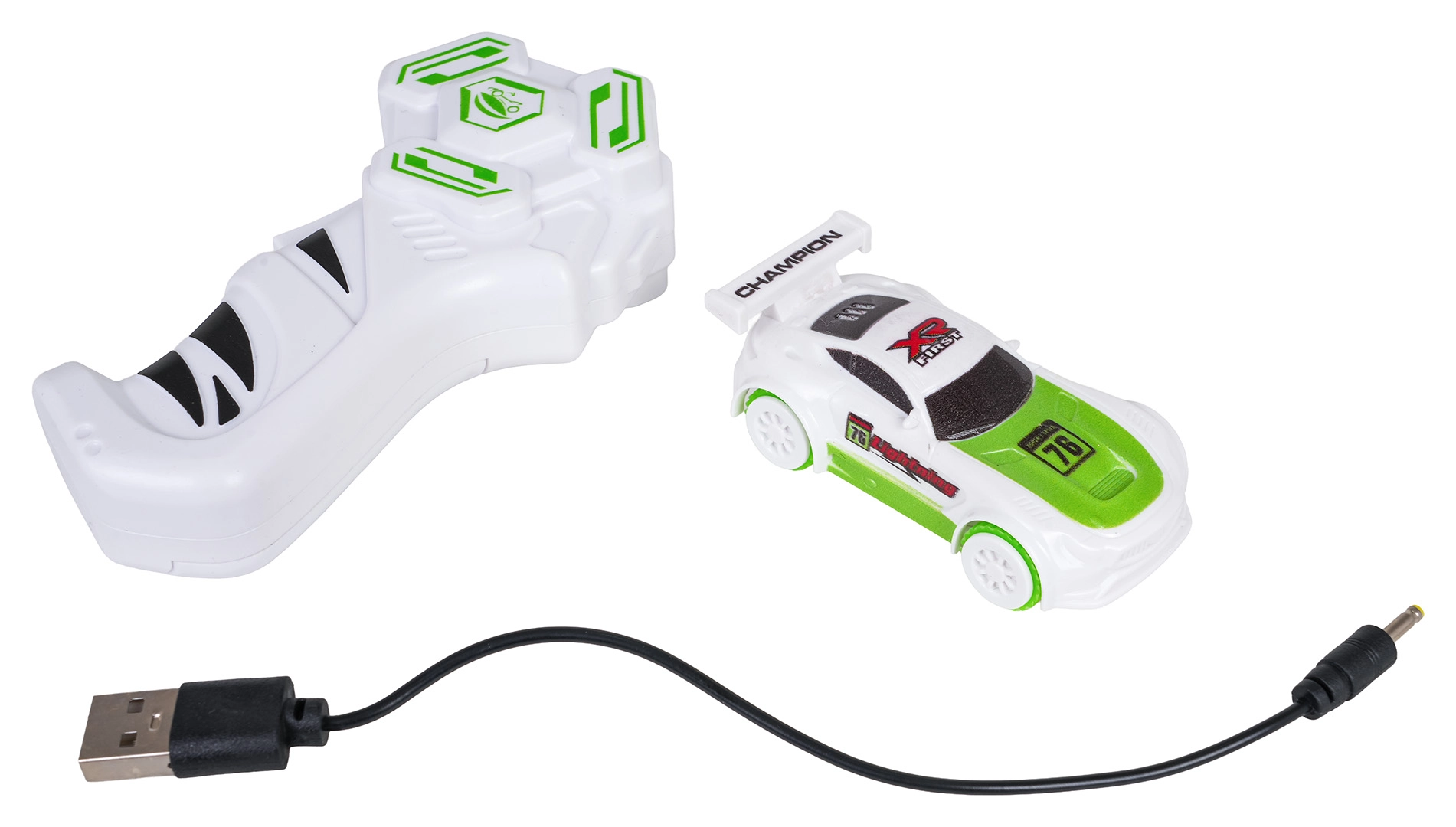 Deli proge, RC avtomobilček, daljinski upravljalnik, USB polnilni kabel, navodila za sestavljanje