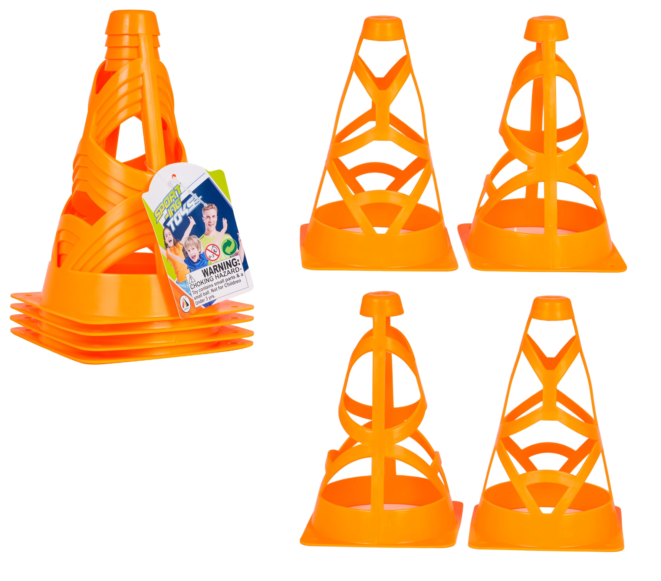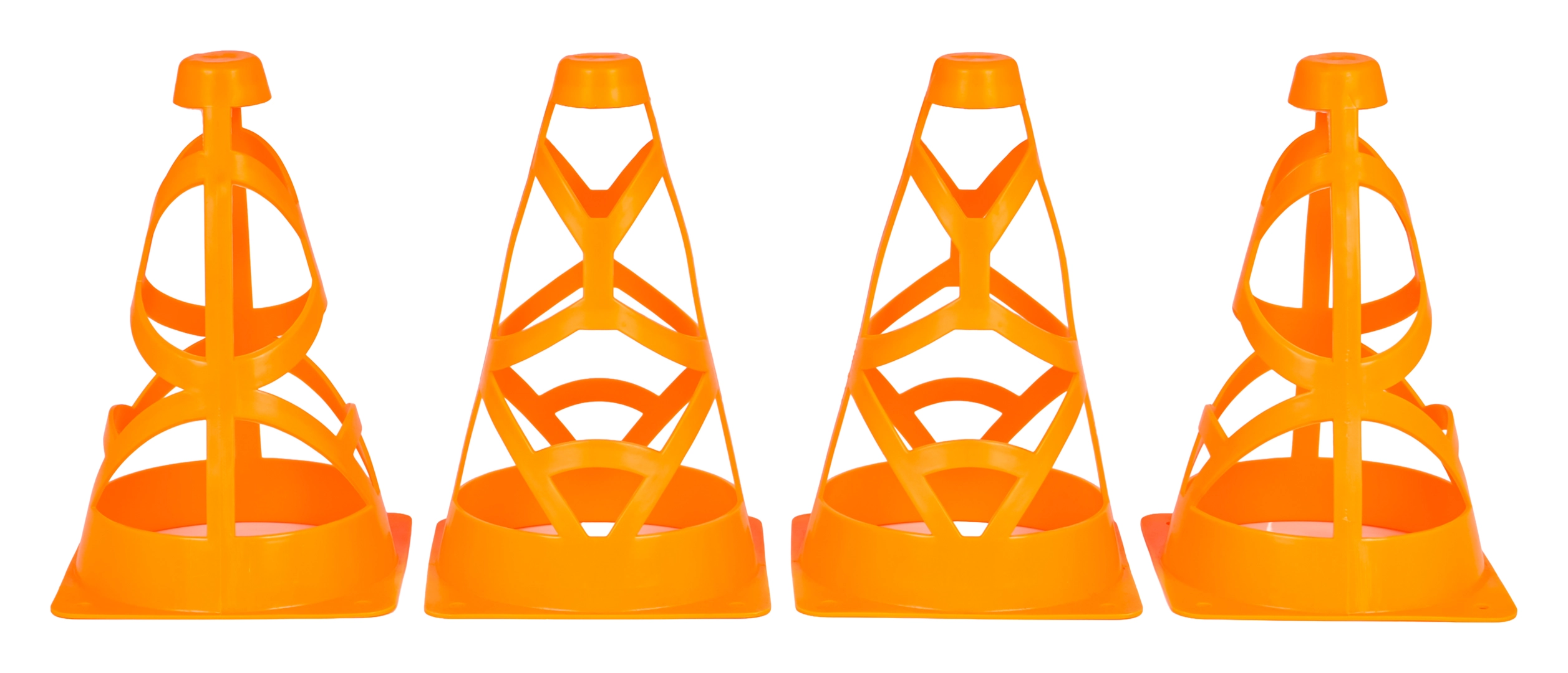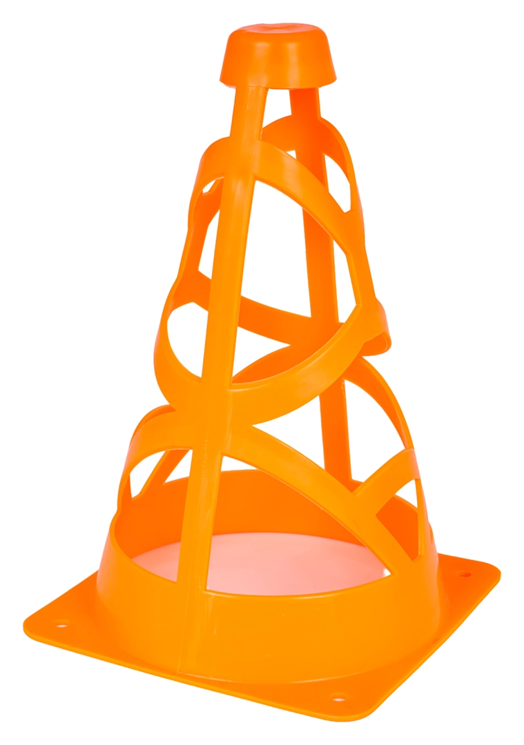 Univerzalni treningovni stožci v izraziti oranžni barvi pomagajo označiti proge, cone in ovire pri igrah in športu. Zaradi lahke plastične konstrukcije se zlahka prenašajo, njihova zložljiva oblika pa prihrani prostor pri shranjevanju. Odprta “mrežasta” struktura in luknje v kotih osnove omogočajo varno sidranje stožcev in zmanjšujejo zračni upor.