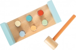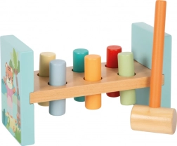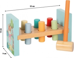 Odkrijte radost igre z leseno zabijalno klopjo z motivi džungle, izdelano iz 100 % FSC certificiranega lesa. Otroci z majhnim kladivcem zabijajo barvne valjčke skozi gumirane odprtine in tako naravno razvijajo fino motoriko, koordinacijo oko–roka ter natančen prijem. Trpežna izdelava, igrive ilustracije živalic in možnost nenehnega ponavljanja igre naredijo to igračo idealno izbiro za male raziskovalce.