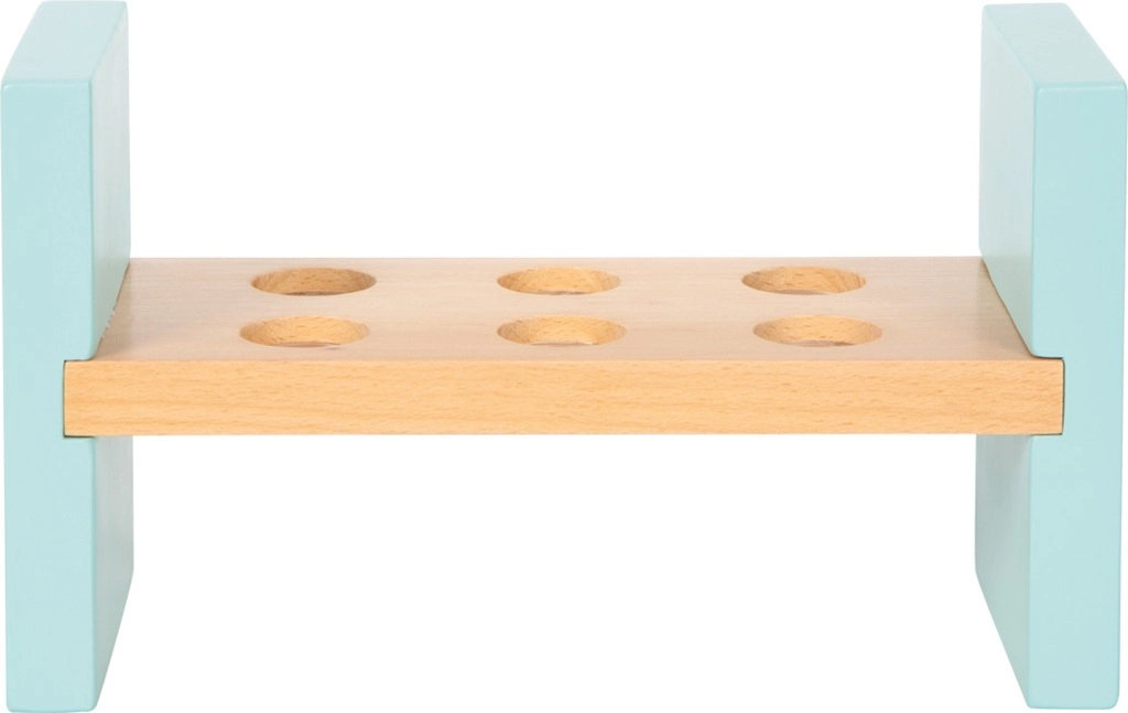 Ta robustna lesena zabijalna klop z veselimi motivi džungle ponuja otrokom od 1. leta varno in smiselno zabavo. Gumirane odprtine držijo valjčke trdno na mestu in hkrati ublažijo udarce, kar otrokom pomaga uriti moč prijema in natančnost. Ko so vsi valjčki zabiti, klop preprosto obrnite in zabava se začne znova.