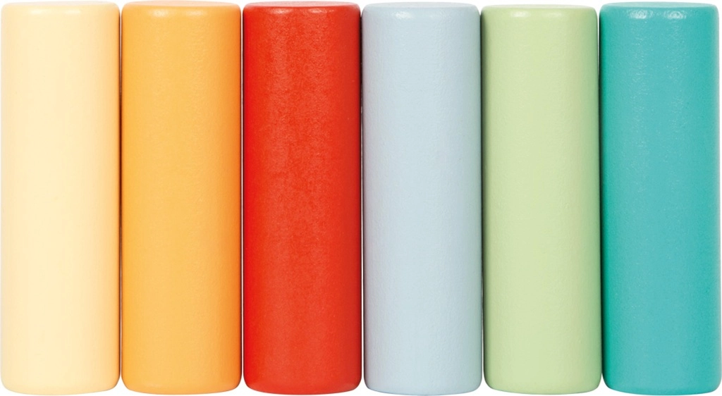 Zabijanje barvnih valjčkov spodbuja natančen prijem, koordinacijo oko–roka in potrpežljivost otrok že v zgodnjem obdobju.