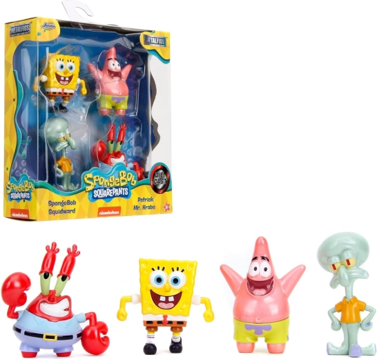 Uradno licenciran set štirih figur iz animirane serije SpongeBob SquarePants znamke Jada Toys. Trdna kovinska (die‑cast) izdelava, živahne barve in ikonični liki – SpongeBob, Patrick, Lignjič in Gospod Rakar. Odlično za zbiratelje, dekoracijo in lahko igro.