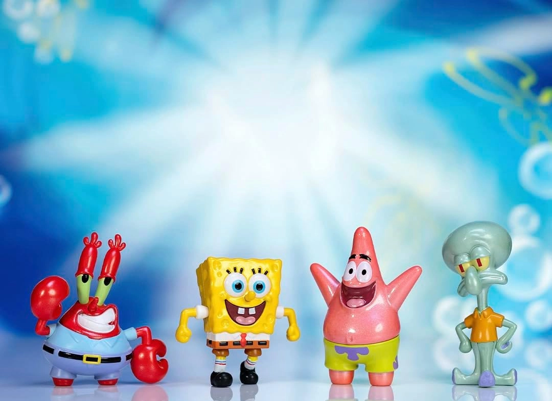 SpongeBob, Patrick, Lignjič in Gospod Rakar v robustni die‑cast kakovosti z jasnimi barvami in zvestimi detajli. Idealno za zbirko in razstavljanje.