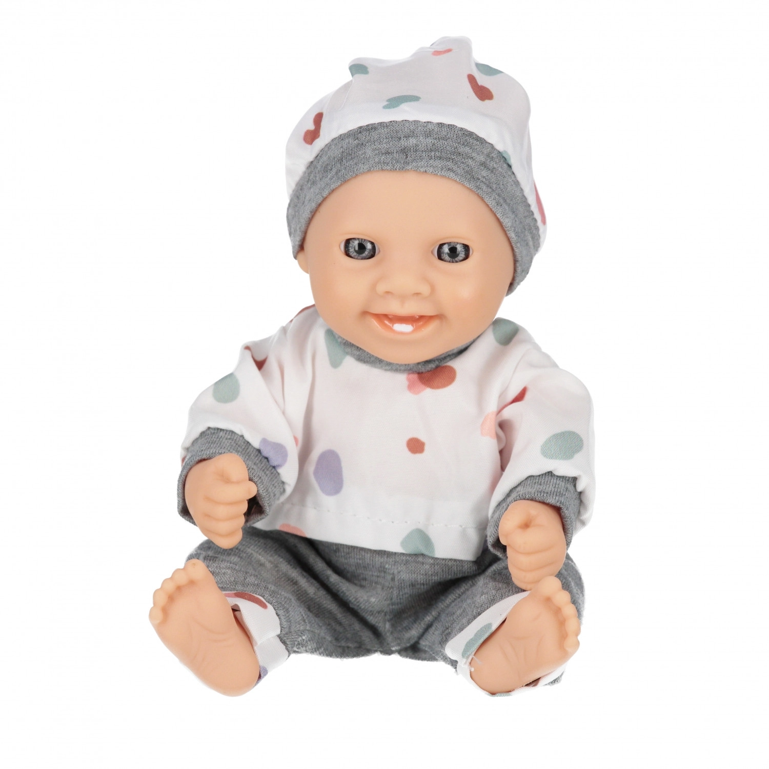 Prisrčna punčka dojenček višine 20 cm razveseli vsakega otroka, ki ima rad igro družine. Ponuja mehkobna oblačilca, premične okončine in je na voljo v šestih barvnih različicah. Idealna za razvoj empatije, fine motorike in domišljije otrok od 3 let. Cena je za 1 kos.