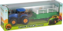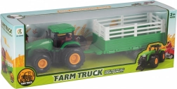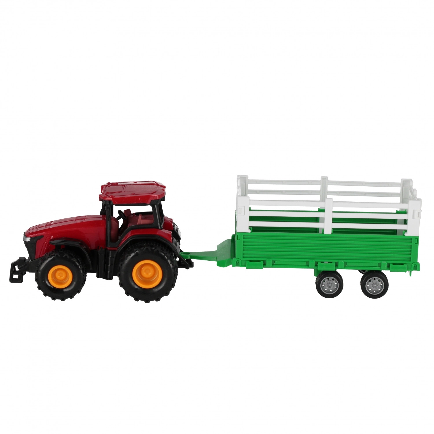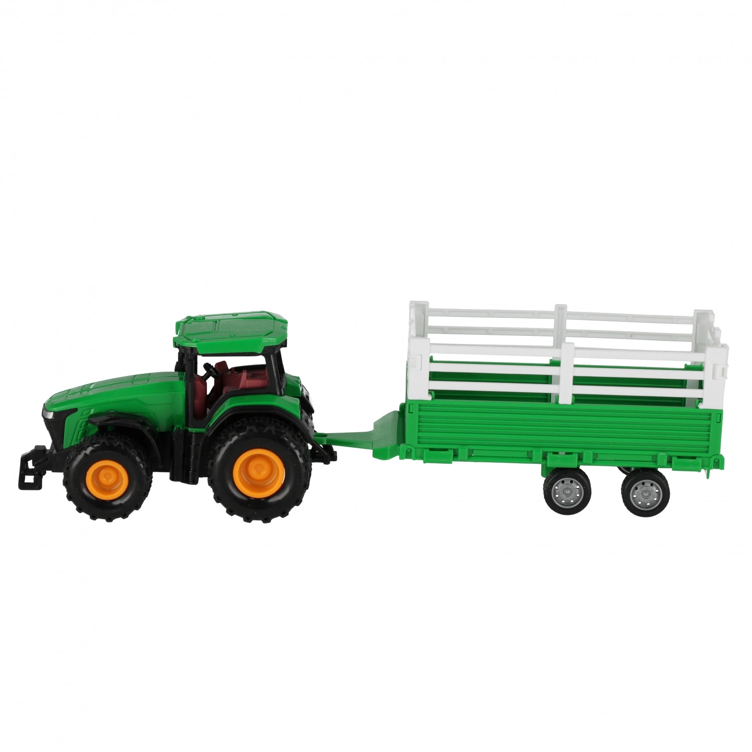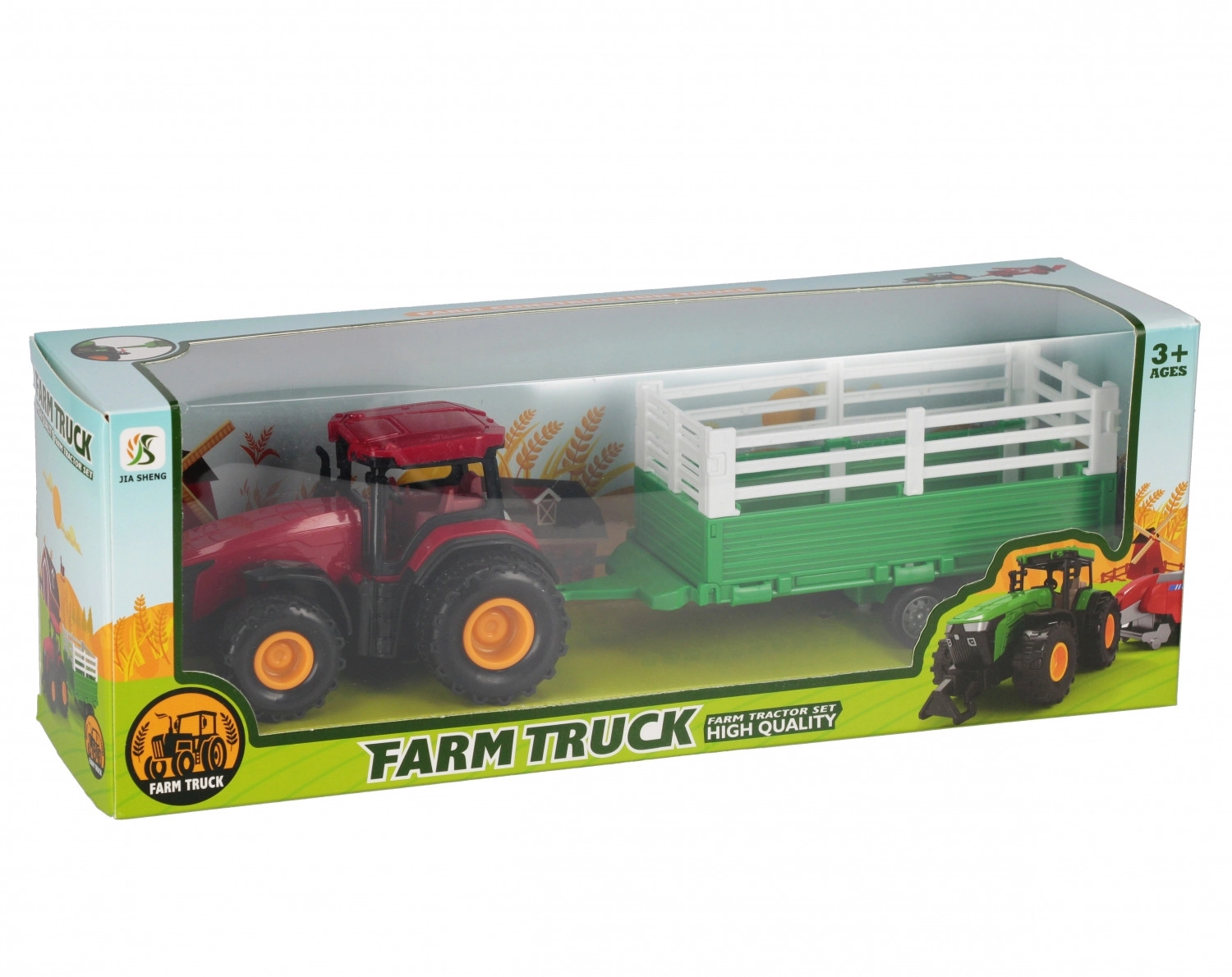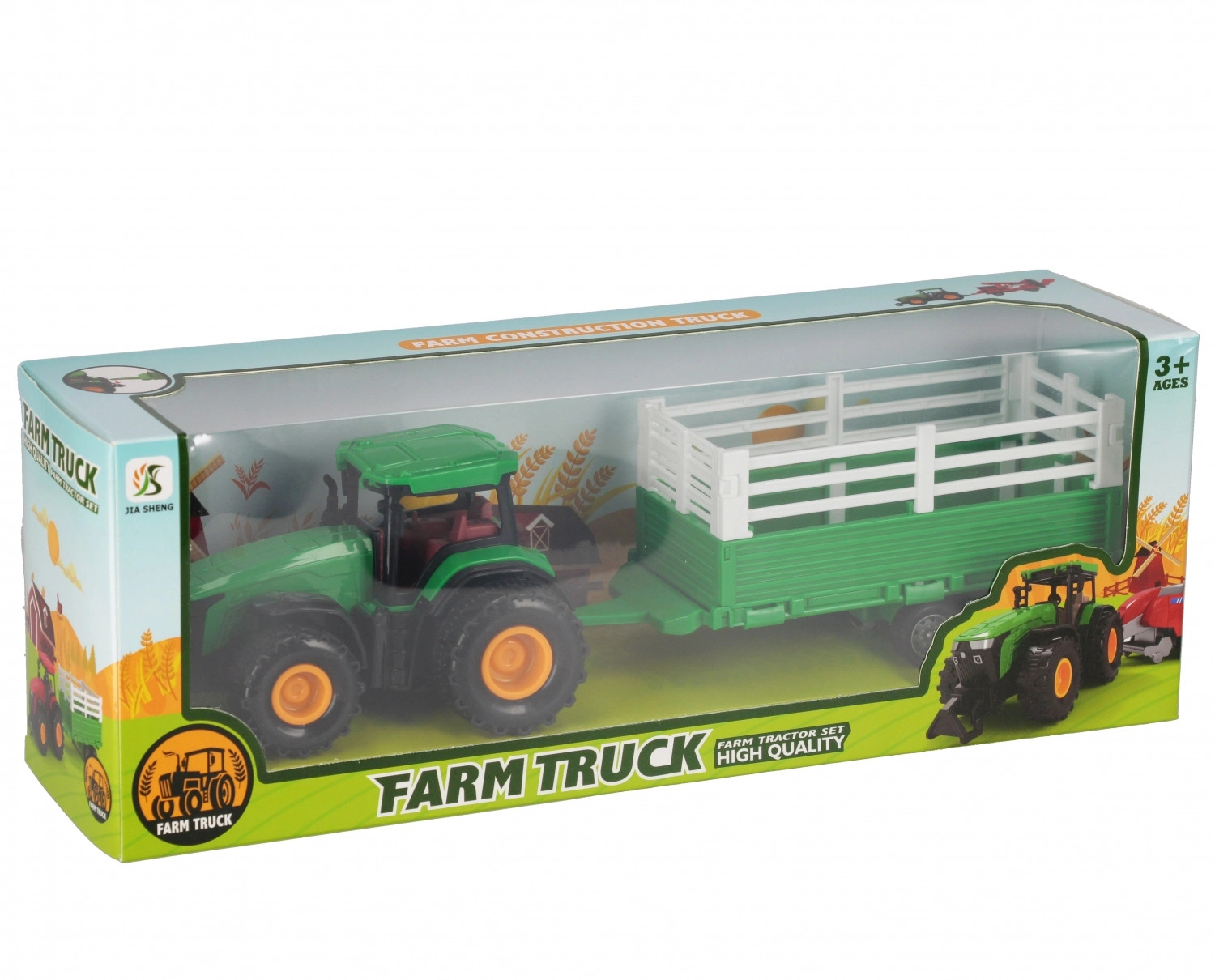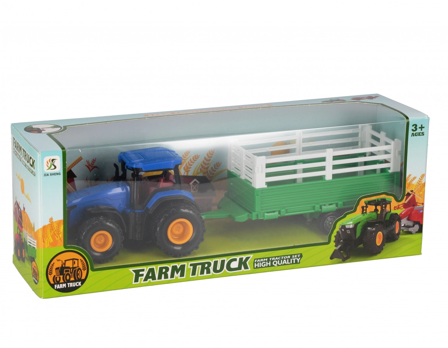 Zabaven kmetijski set za male voznike – traktor z odstranljivo prikolico in funkcijo pull-back. Samo povleci nazaj in traktor se samodejno zapelje. Realistični detajli, kolesa, ki se vrtijo, in prikolica za prevažanje tovora. Velikost približno 33 × 12 × 9 cm, primerno za otroke od 3 let.