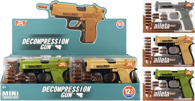 Zabavna strelna pištola za male akcijske navdušence prinaša odlično zabavo, preprosto upravljanje in kompaktne mere 12 × 18 × 3 cm. Na voljo je v več različicah in razveseli vsakega otroka od 6 let dalje.
