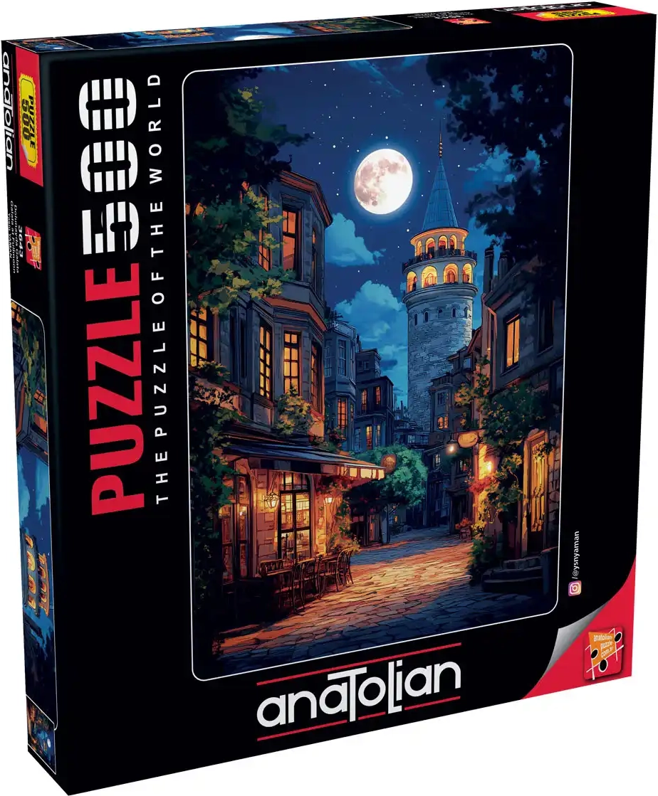 Uživajte v sprostitvi ob sestavljanju kakovostnih sestavljank z motivom mističnega istanbulskega stolpa Galata, osvetljenega z mesečino. Sestavljanka s 500 kosi ponuja idealno zahtevnost za počitek in trening zbranosti, po sestavi pa ustvari sliko velikosti približno 33 × 48 cm.