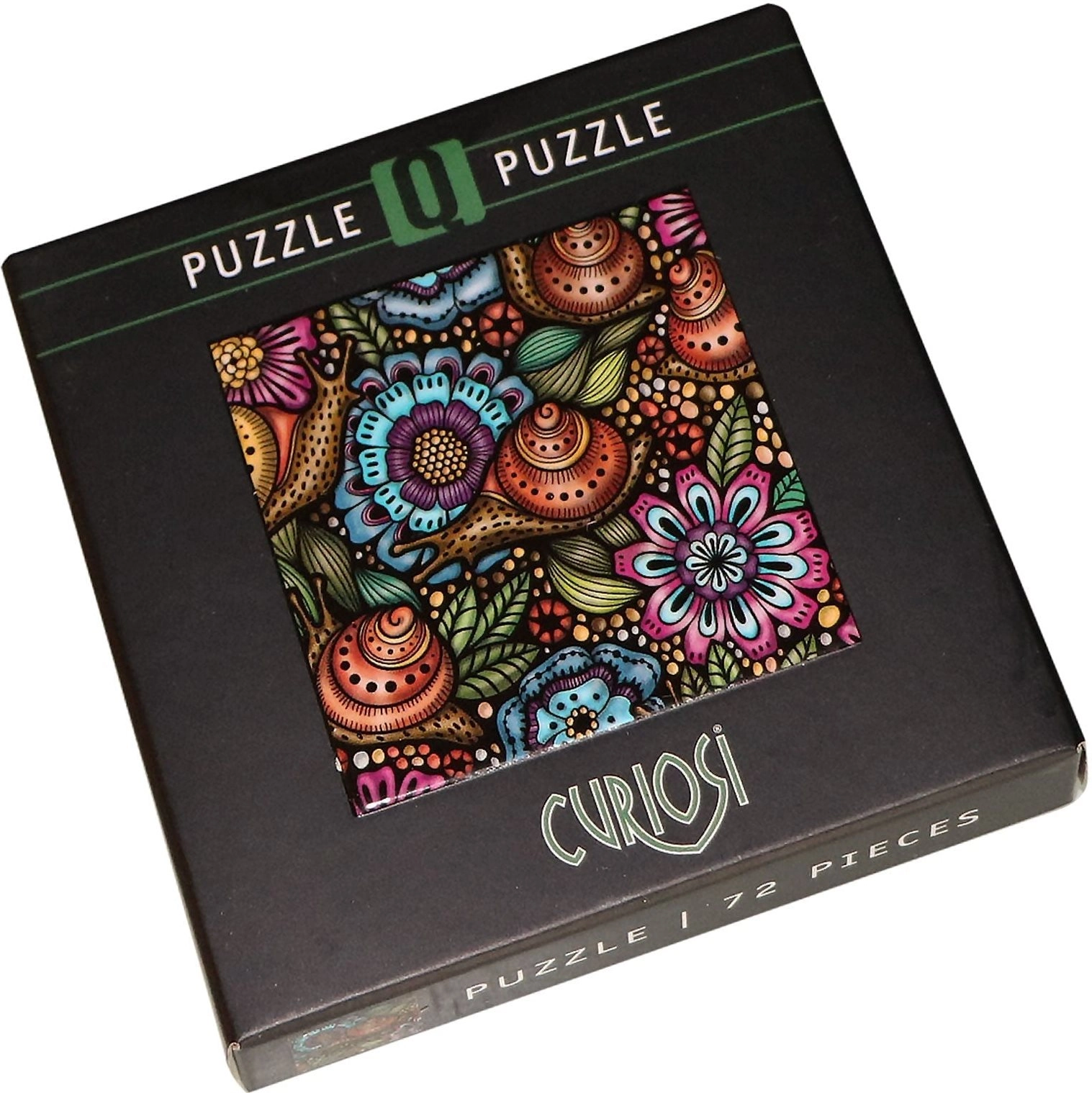Ta kompaktna kvadratna sestavljanka z motivom polžev na razcvetelih cvetlicah bo razveselila vsakega ljubitelja sestavljanja. Zaradi neobičajnih oblik kosov prinaša bolj zabavno in igrivo izkušnjo, hkrati pa razvija potrpežljivost, osredotočenost in fino motoriko.