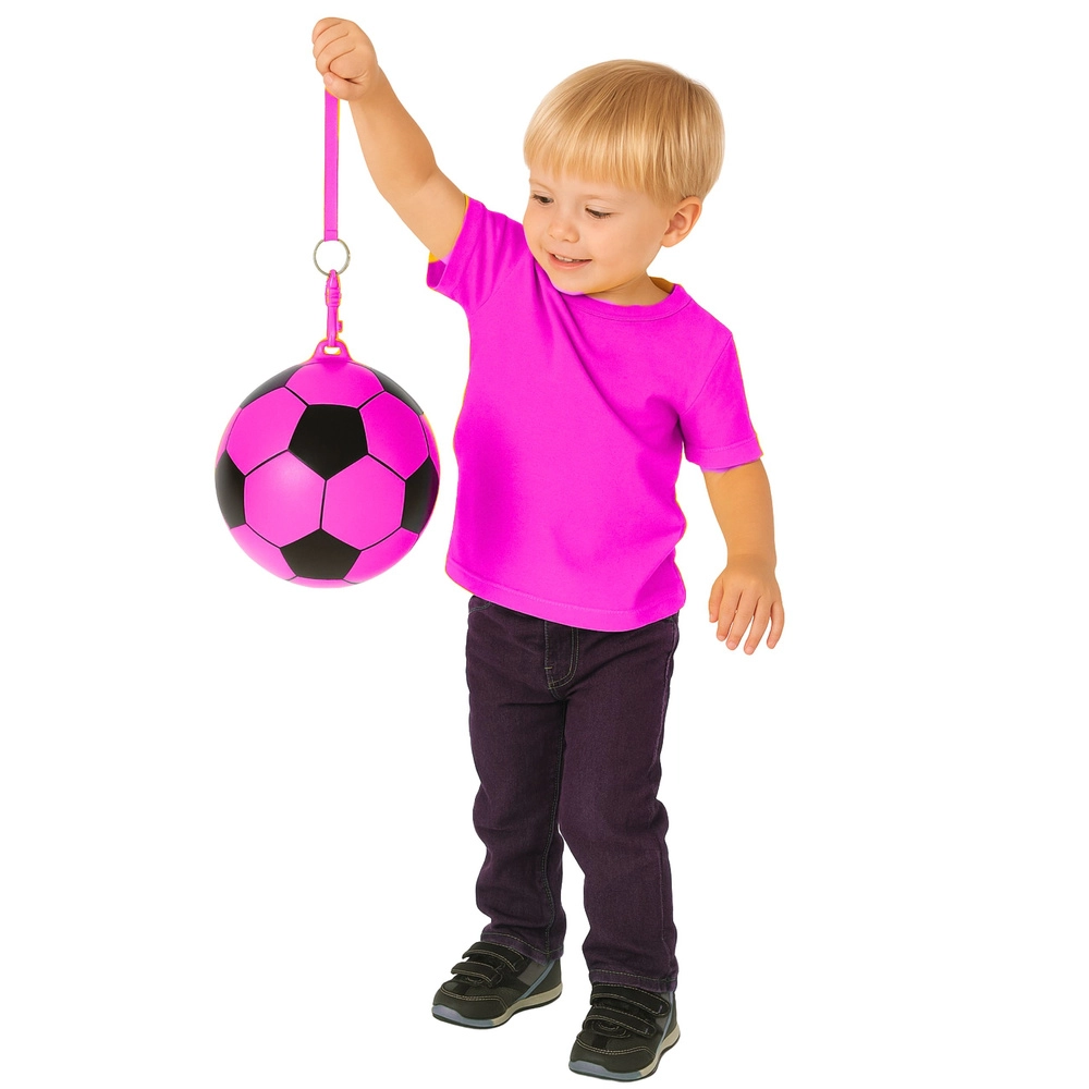 Praktično držalo omogoča pritrditev vrvice ali karabina – primerno za igre natančnosti, trening refleksov in varno brcanje brez nenehnega tekanja za žogo. Idealno za otroke od 3 let.